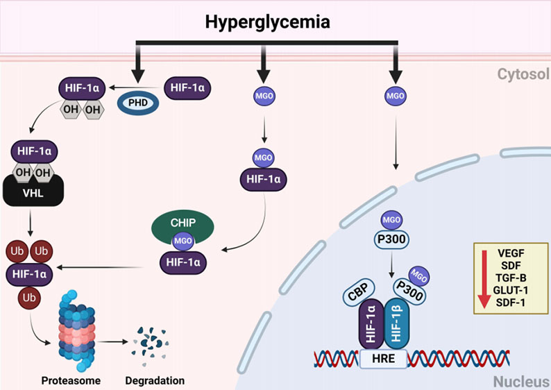 Figure 1. Hyperglycemia induced destabilization and dysfunction of HIF-1 signaling in diabetes.